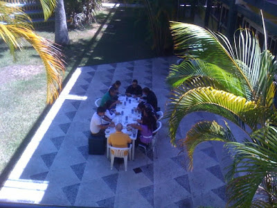 En la segunda parte hicimos una revisión de la teoría básica de XP, para re-leer los conceptos y verlos a la luz de nuestra práctica cotidiana. Aqui se nos acabó la mañana y nos fuimos a almorzar.
